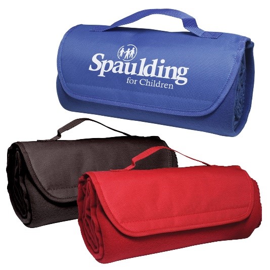 Keep your clients warm and comfortable with these portable stadium blankets. The stadium blankets are polyester fleece with a convenient loop and hook closure. They also feature a reinforced handle for easy transport. These make for the perfect roll-up accessory for sporting events, picnics, or any outdoor activity.