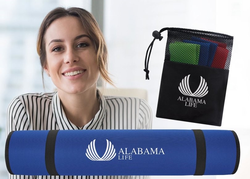 • Tags: Case Study, Promotional Products, BIC Graphic, Yoga Mat with Shoulder Straps, Exercise Resistance Bands Set, Insurance, Health, Fitness